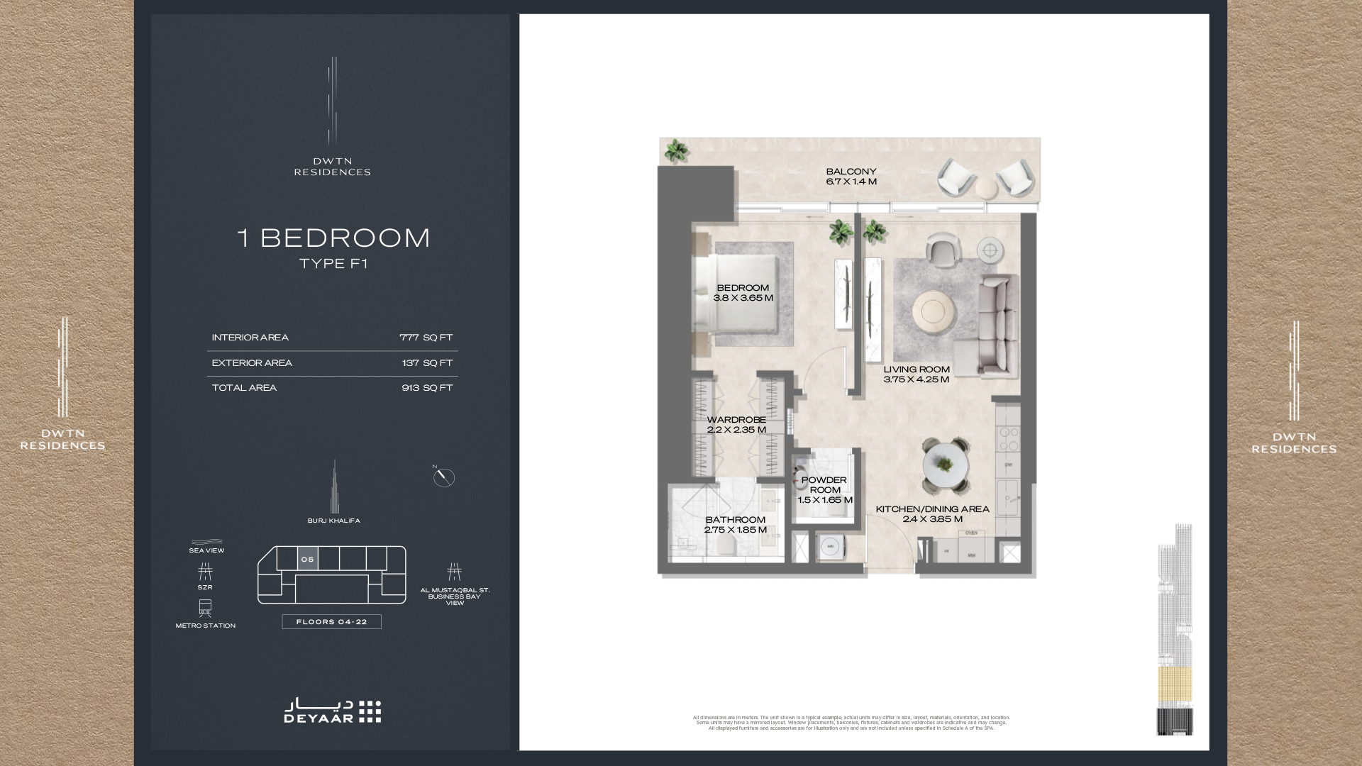 • 1 BR, Sizes- 764 To 913 Sq. Ft. Starting From: 1.86 M AED