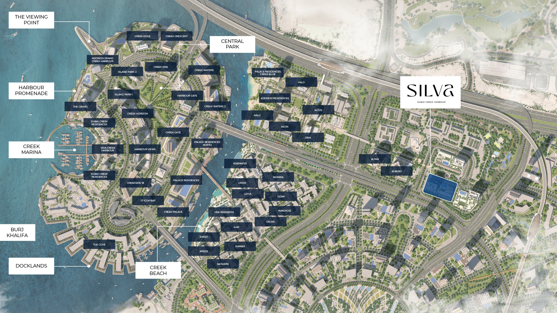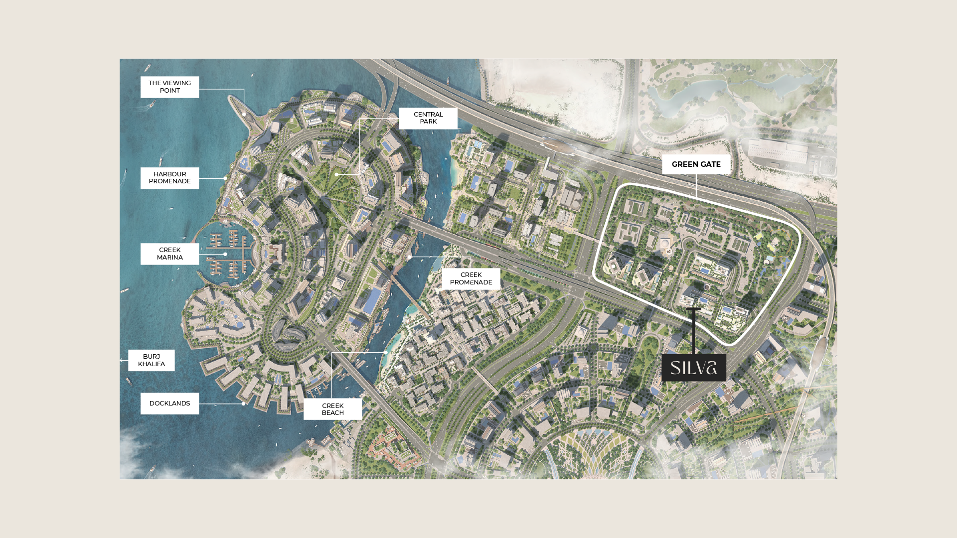 Silva by Emaar is a stunning 50-storey residential tower located in the newly emerging Green Gate district of Dubai Creek Harbour. Thoughtfully developed by Emaar Properties, Silva features a stylish selection of 1, 2, and 3-bedroom apartments that perfectly blend comfort and contemporary living. Residents will enjoy direct access to beautifully landscaped parks and lively community spaces. With around 434 units available, Silva offers a unique chance to own a home in one of Dubai’s most exciting and fast-growing waterfront neighborhoods.